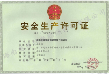 【奧普佳】安全生產(chǎn)許可證